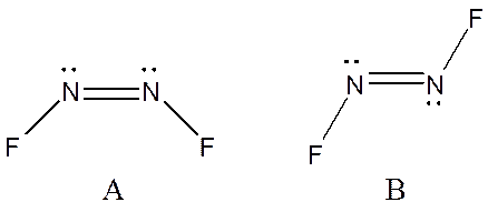 در مولکول N2F2 نیز شکل فضایی دور هر اتم نیتروژن به صورت خمیده است. این دو شکل خمیده را به دو صورت زیر می توان ترکیب کرد: