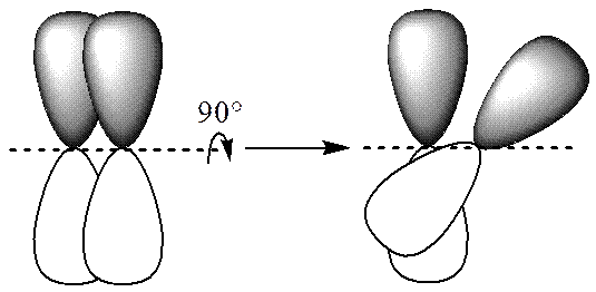 ممانعت چرخش حول پیوندهای چندگانه بعلت وجود پیوند پای در آنها، از این مطلب ناشی می شود که پیوند پای از همپوشانی جانبی اوربیتالهای اتمهای تشکیل دهنده پیوند بوجود می آید و موقع چرخش حول پیوند چندگانه یک اوربیتال بوجود آورنده پیوند پای نسبت به اوربیتال دیگر بوجود آورنده پیوند پای به نحوی می چرخد که همپوشانی جانبی از بین می رود و در واقع پیوند پای شکسته می شود. شکل زیر را در نظر بگیرید.