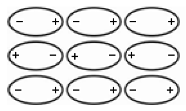 شکل: در حالت (a) مولکولهای غیرقطبی در کنار هم قرار دارند، در حالت (b)تقارن ابر الکتریکی یک مولکول غیرقطبی بهم خورده است و تبدیل به یک دوقطبی لحظه ای شده است، در حالت (c) دوقطبی لحظه ای حالت (b) مابقی مولکولهای غیرقطبی را نیز به دوقطبی های لحظه ای تبدیل کرده است و بین مولکولها جاذبه برقرار شده است.